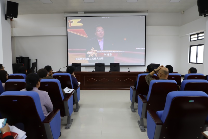 ▲学院教职工认真观看影片