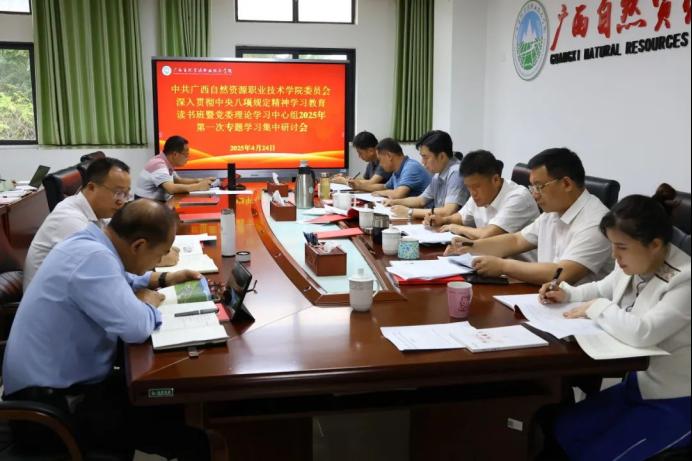 2025年4月24日下午,pp电子官方网站党委召开深入贯彻中央八项规定精神学习教育读书班暨党委理论学习中心组2025年第1次专题学习集中研讨会,深入学习领会习近平总书记关于加强党的作风建设的重要论述和关于广西工作论述的重要要求,并学习贯彻中央八项规定及其实施细则精神。学院党委书记成国立主持会议并讲话。