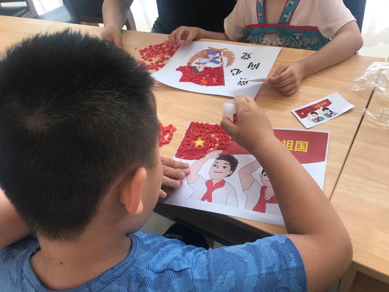 猜灯谜环节,家长和小朋友们一起头脑风暴,共解出了50道与党史有关的灯谜。小朋友们在家长的帮助下,自己动手制作出了“红领巾心向党”“我爱祖国”等红色手工彩画,给自己送上了一份有意义的六一儿童节礼物。