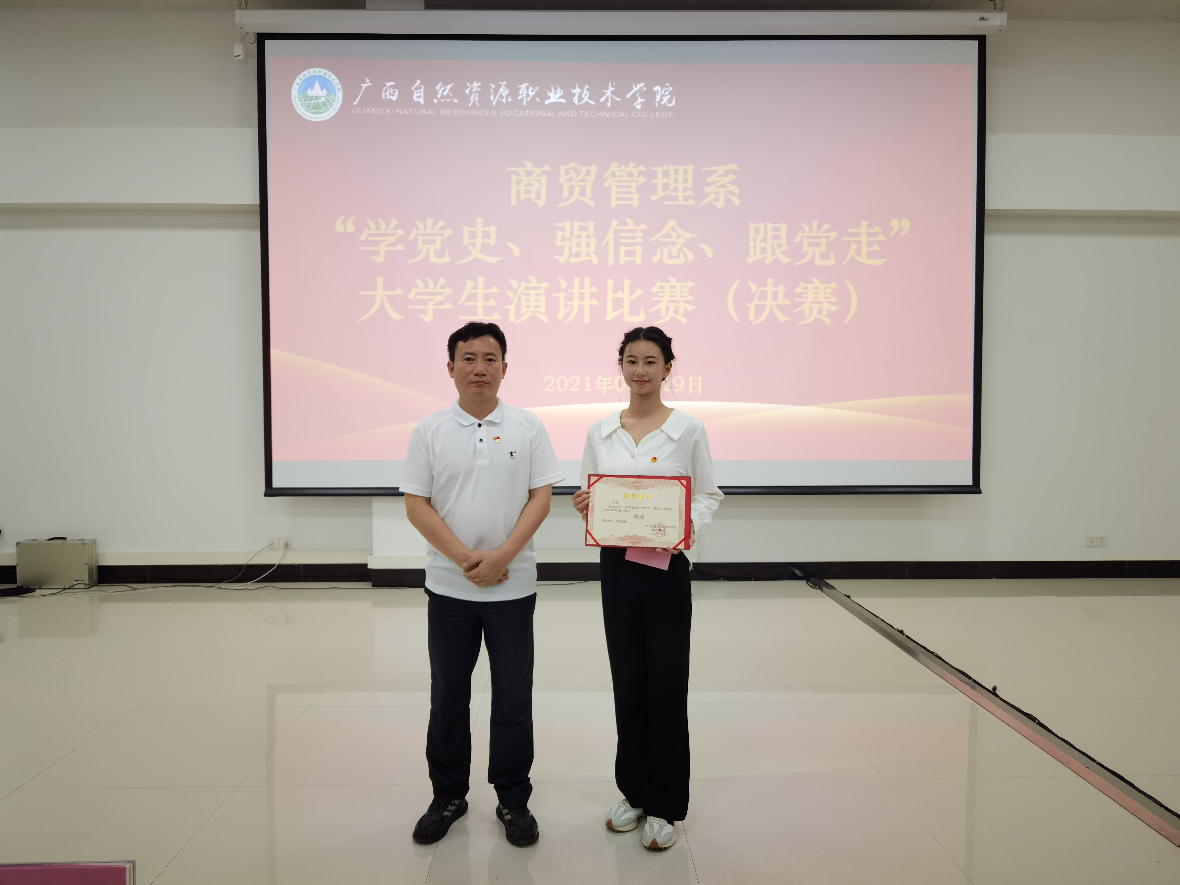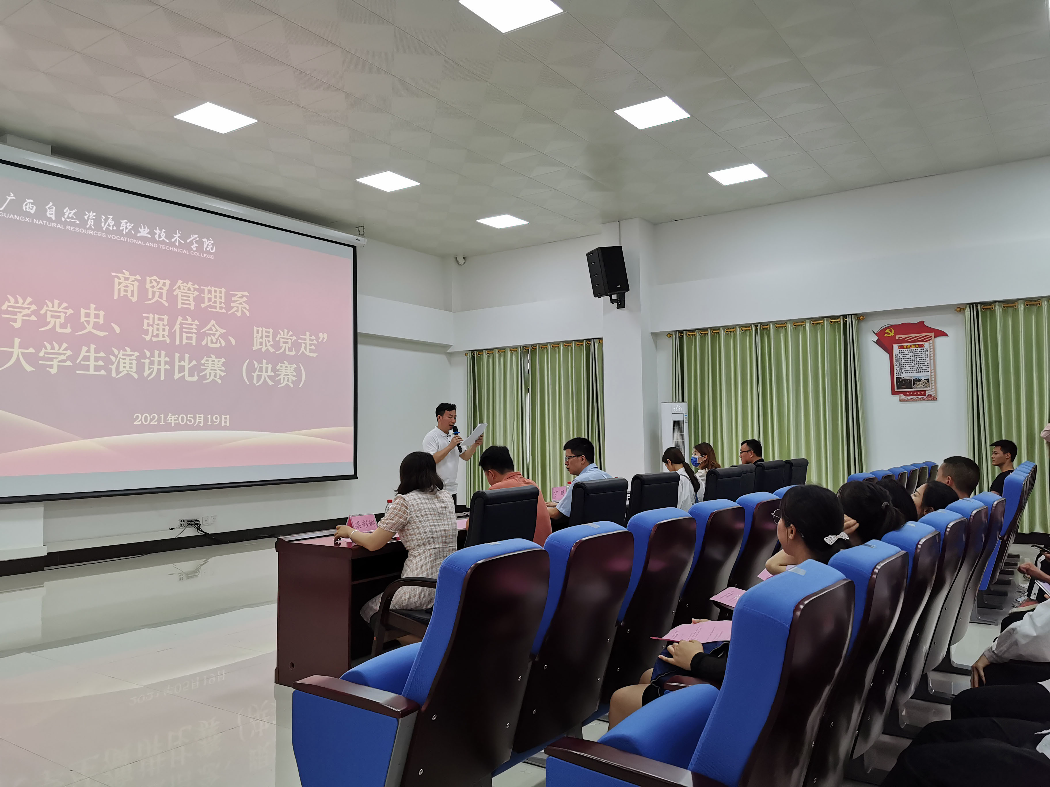 为庆祝中国共产党建党100周年,歌颂党的伟大成就,坚定奋斗信心,继承并发扬党的优良革命传统,展示当代大学生风采。5月19日下午,由商贸管理系党支部主办、系团委学生会承办的“学党史 强信念 跟党走”主题演讲比赛的决赛在行政楼501举行。学院副院长宇鹏、商贸管理系负责人、党支部书记李斌、纪检监察室刘浩、院团委书记钟月婷、团委副书记张琪琪、公共基础部以及商贸管理系党支部全体教师党员、各班级团支书、班长,还有团委、学生会全体成员参加了比赛。参加决赛的24位同学,历经严格初赛筛选最终脱颖而出。